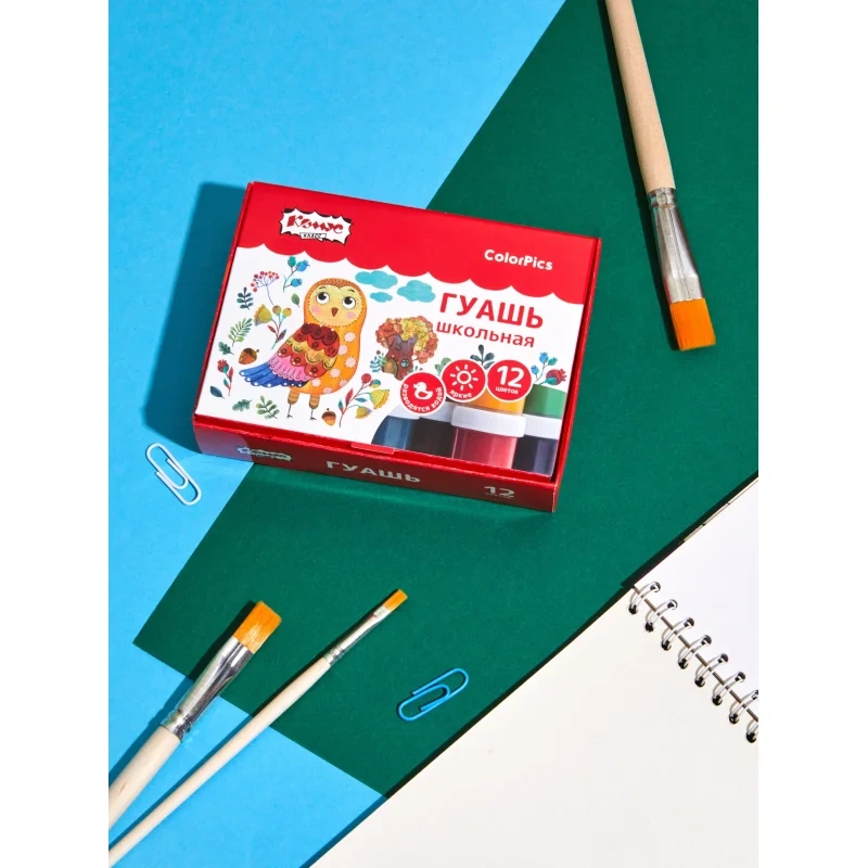 Гуашь Комус Класс (№ 1 School) ColorPics 12 цветов по 10 мл