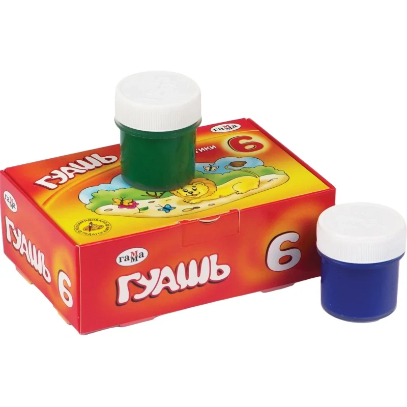 Предназначена для детского творчества, выполнения художественно-декоративных работ, оформительских работ. Краски изготовлены на основе натуральных компонентов и высококачественных пигментов. Обладают хорошей кроющей способностью и чистотой цвета. Гуашь находится в пластиковых герметичных баночках с завинчивающейся крышкой. В набор входит 6 цветов: зеленый, желтый, красный, белый, синий, черный. Краски упакованы в картонную коробку, размер упаковки (ДxШxВ): 113×78×41 мм. Объем одной баночки — 20 мл. Поставляется без кисти.Законодательные и технические документы