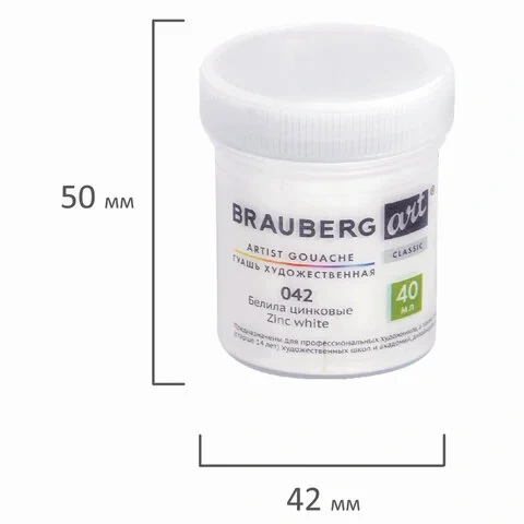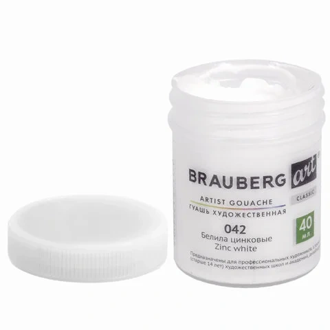 Гуашь художественная 1 шт., BRAUBERG ART CLASSIC, баночка 40 мл, БЕЛИЛА ЦИНКОВЫЕ, 191581