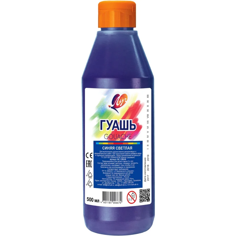Гуашь Луч Классика светло-синяя, бутылка с дозатором, 500мл