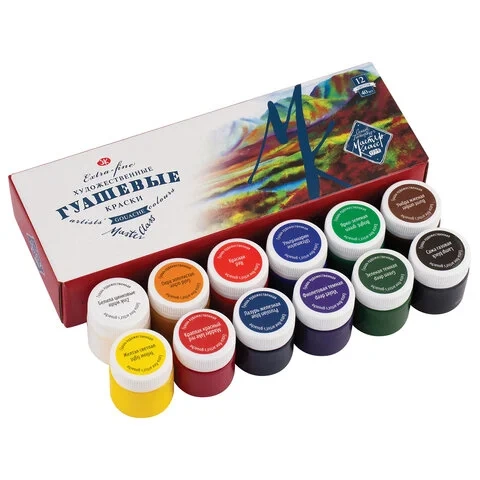 Набор гуаши ’Мастер-Класс’ состоит из 12 базовых цветов, необходимых художнику для работы.