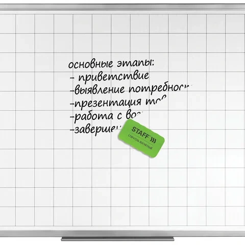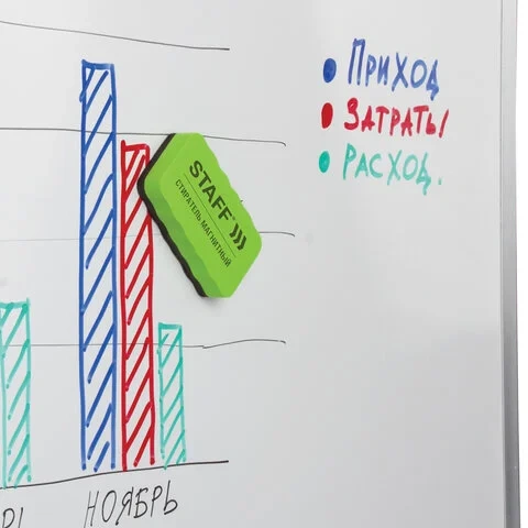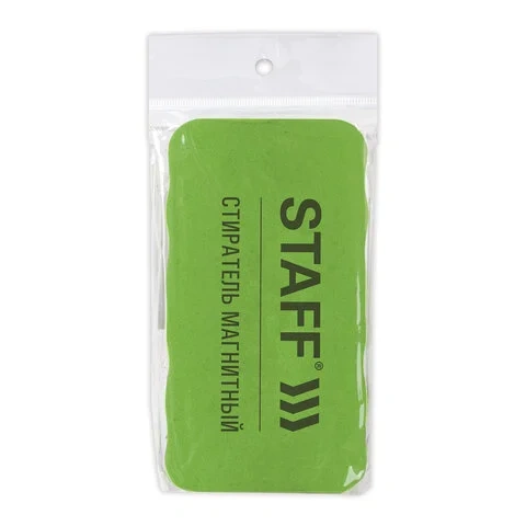 Встроенный магнит позволяет расположить стиратель в любом месте рабочей поверхности доски. Стиратель имеет эргономичную форму размером 107х57 мм. Стирающий слой выполнен из фетра. Поставляется в упаковке с европодвесом.