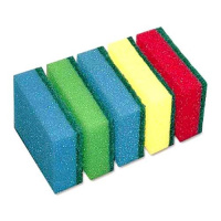 Губка средней жесткости. Эффективно удаляет сложные загрязнения с твердых поверхностей. Идеально подходит для мытья посуды. Абразив приварен к пенке, что исключает его отклеивание в процессе работы и продлевает срок службы губки.