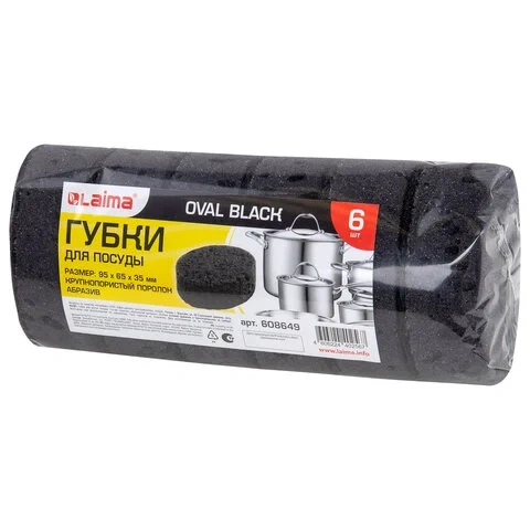 Губка Laima Oval Black 95х65х35мм, крупнопористый поролон/абразив, 6 шт/уп