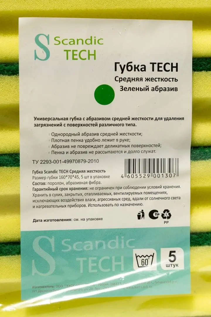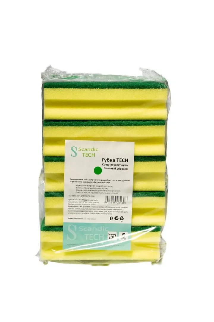 Губка Scandictech 16х7х4.5см, зеленый абразив, 5шт/уп