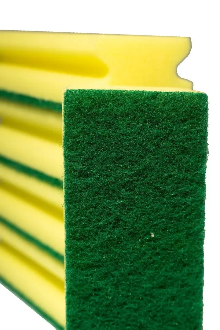 Губка для посуды Скандик Тек поролоновая профильная с абразивом, пачка 5 шт.Размер: 160х70х45 мм.Цвет: желтый.Абразив: зеленый (средней жесткости).В индивидуальной упаковке.