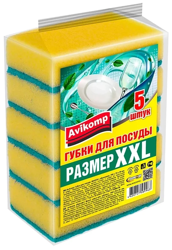 Губка для посуды Макси Супер поролоновая с абразивом, пачка 5 шт.Размер: 100х70х30 мм.Цвет: в ассортименте.В индивидуальной упаковке.