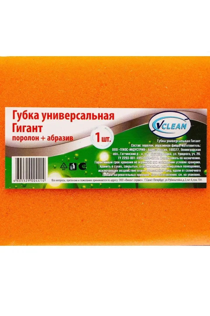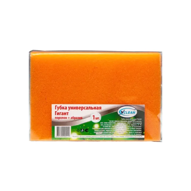 Губка для посуды VCLEAN Гигант поролоновая с абразивом.Размер: 100х95х40 мм.Цвет: в ассортименте.В индивидуальной упаковке.