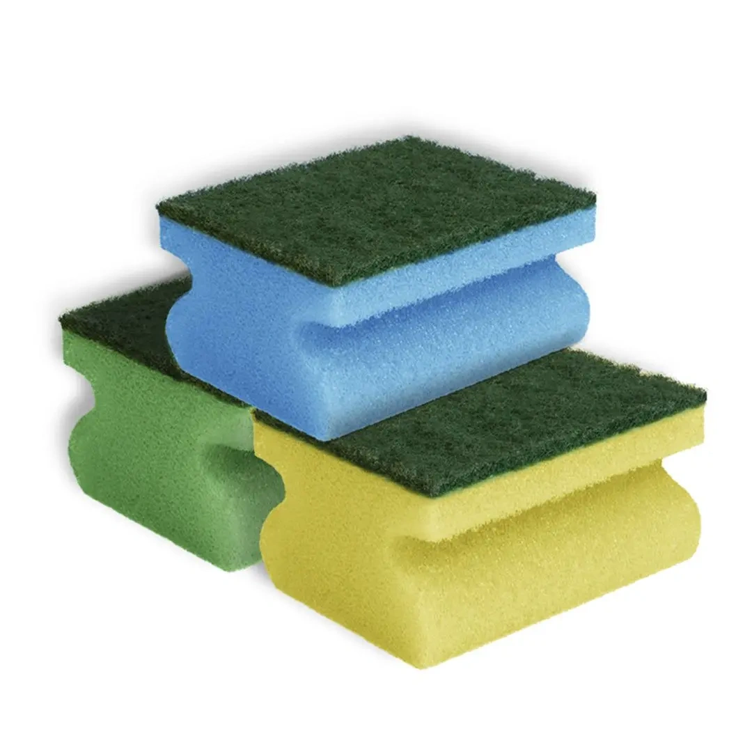 Двухслойная, универсальная, очень прочная кухонная губка. Имеет эргономичный дизайн, что делает ее простой в использовании, прекрасно лежит в руке. Размер идеально подходит для ежедневного применения. Состав: полиуретан, фибра. Размеры 1 губки: 9 х 7 х 4,3 см