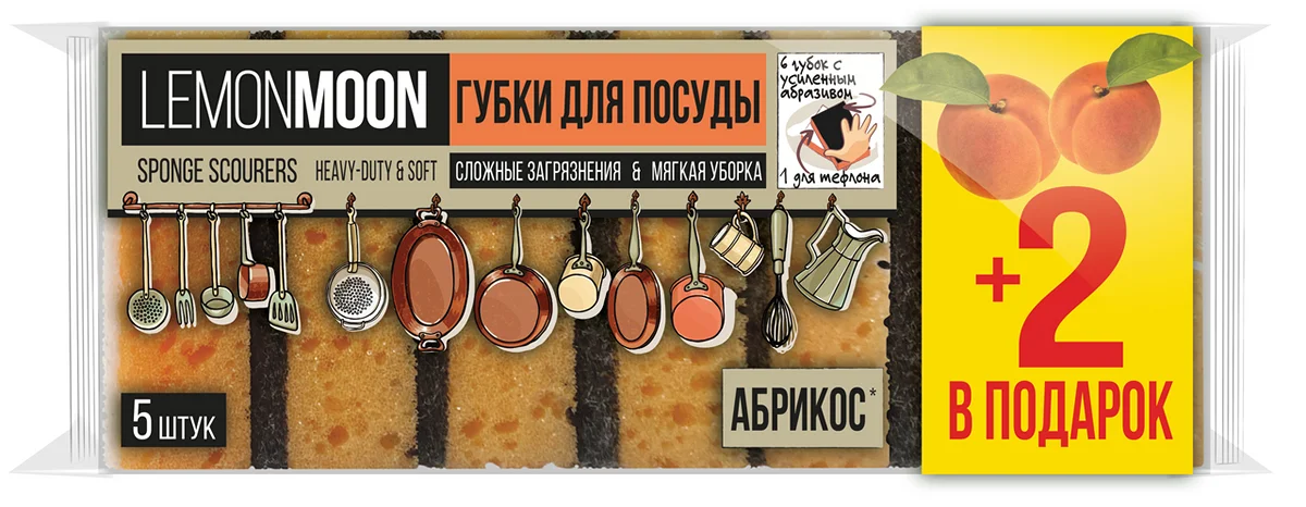 Губка для посуды Lemon Moon поролон абрикос 10 x 7.1 x 3.6см, 7шт