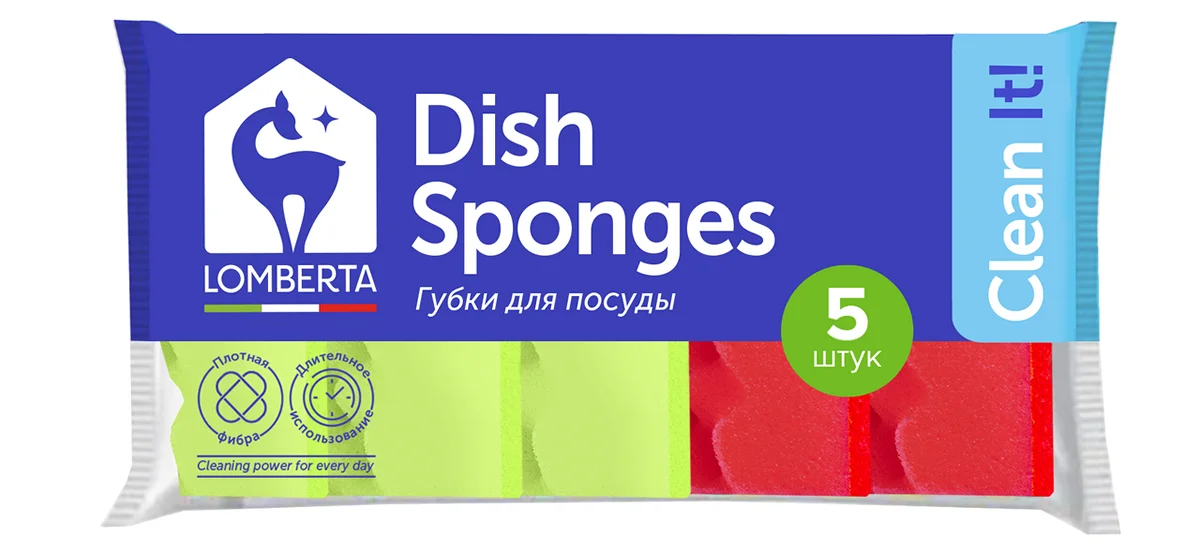 Губка для посуды Lomberta 9.5 x 6.5см, 5шт