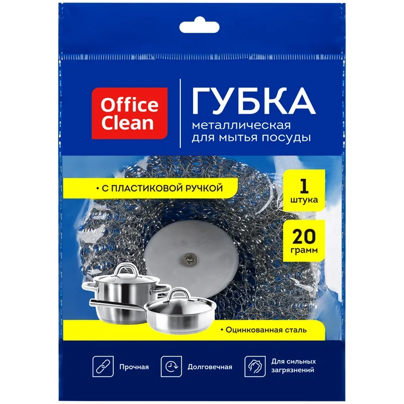 Губка для посуды OfficeClean, металлическая с пластиковой ручкой, сетчатая, 1шт., 9*6см (20г)