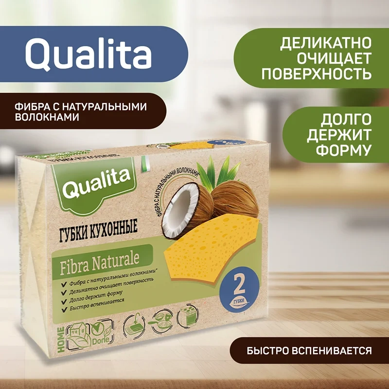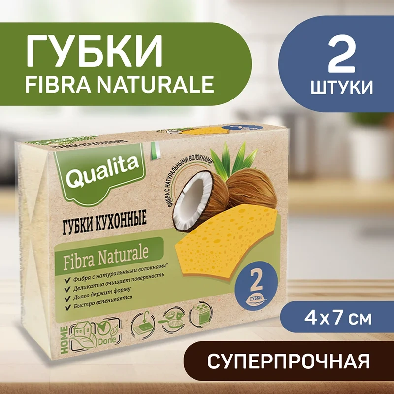 Губка для посуды Qualita Fibra Naturale 2шт, 4 х 7см