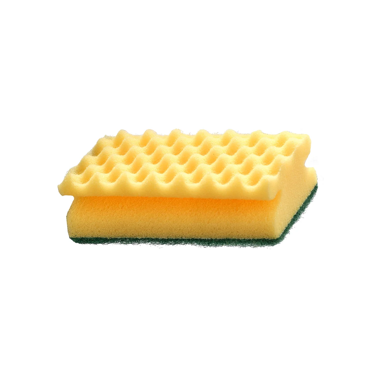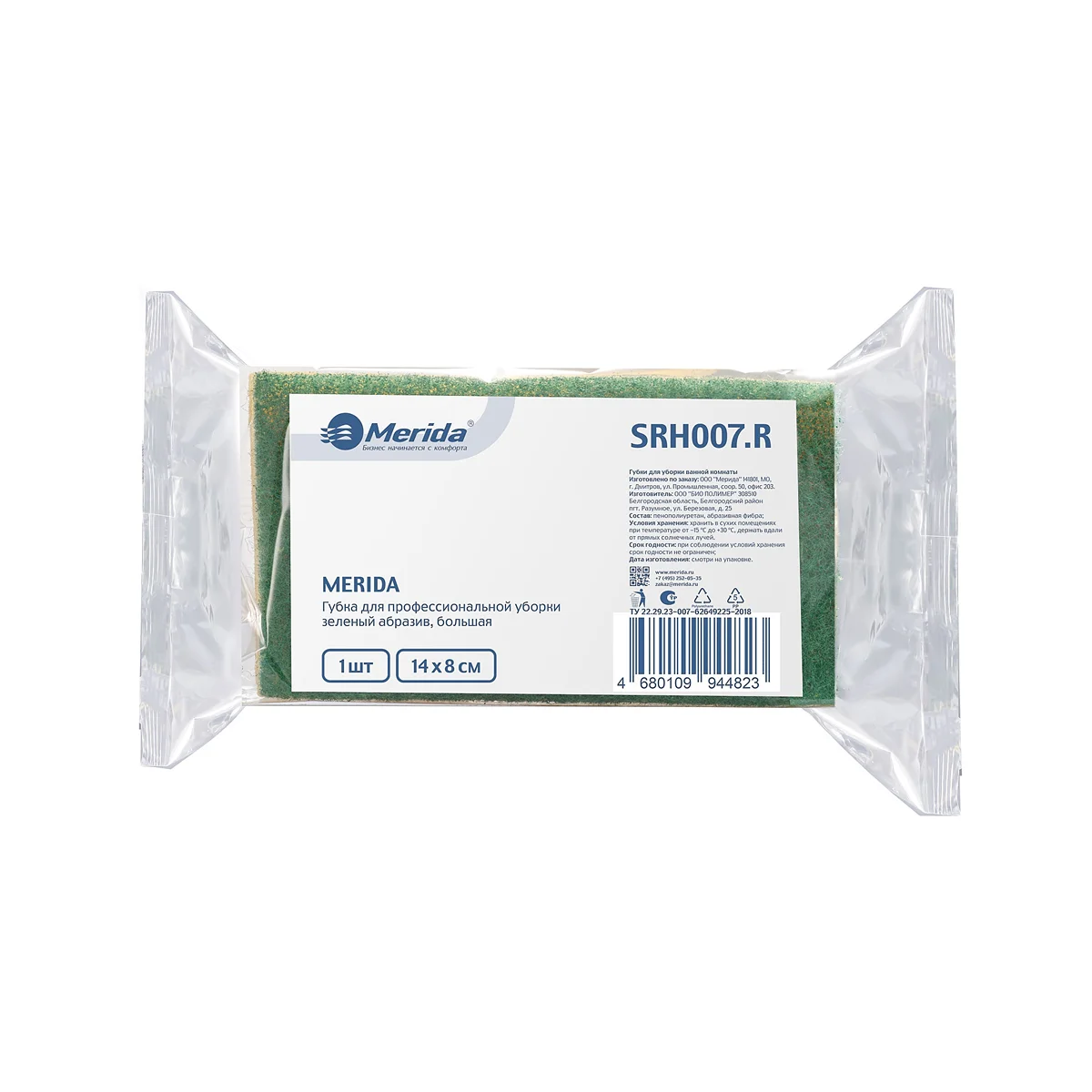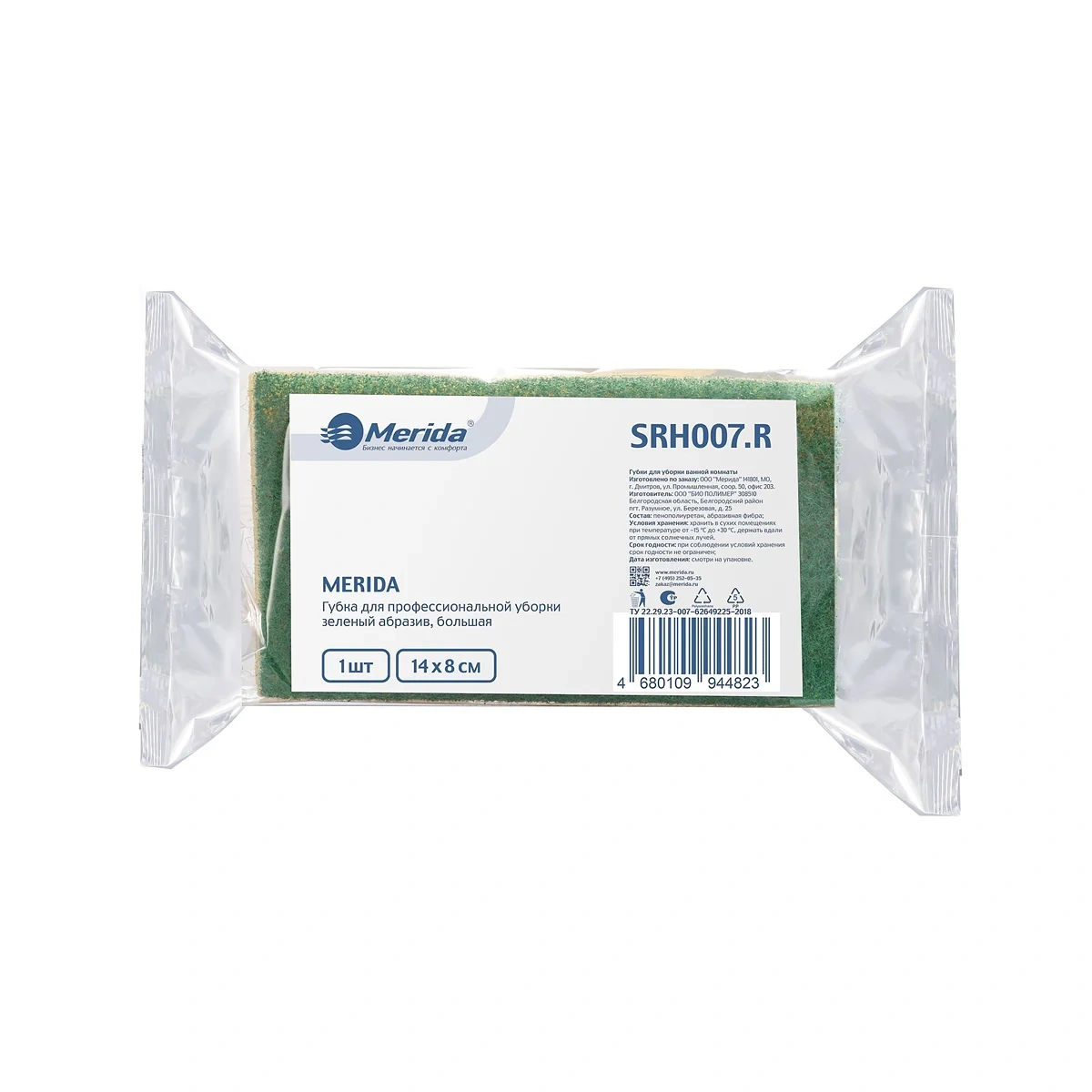 Губка для профессиональной уборки MERIDA, зеленый абразив, желтый ППУ, большая 14 х