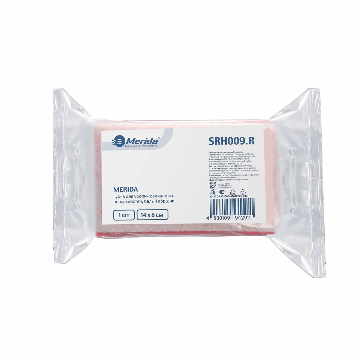 Губка для уборки деликатных поверхностей MERIDA, белый абразив, красный ППУ, 14 х 8