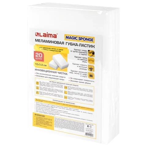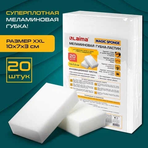 Губка-ластик МЕЛАМИНОВАЯ для удаления пятен, для чистки кухни, уборки, обуви, 10х7х3 см, КОМПЛЕКТ 20