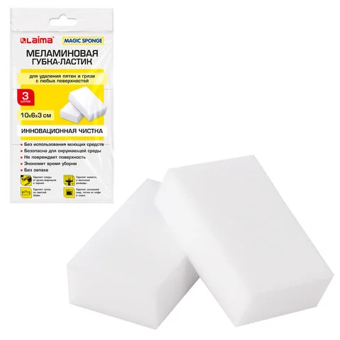 Губка меламиновая Laima 10х6х3см, 3шт/уп, 605035