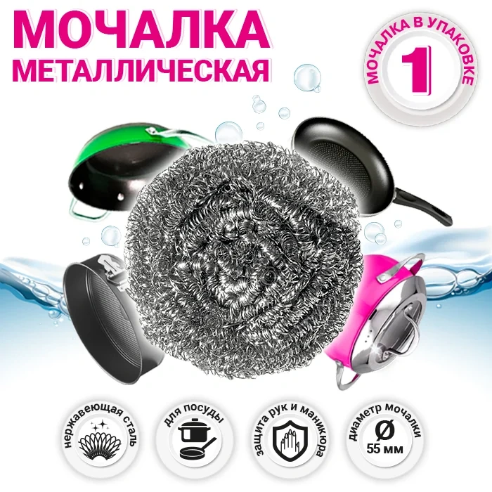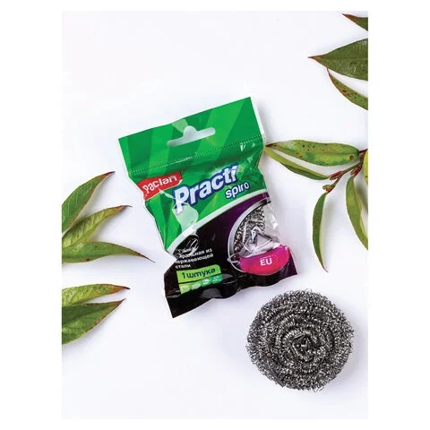 Мочалка Paclan Practi Spiro металлическая, 12,5 x 9,3 x 3,3 см сплетена из единой нити в форме больших непрерывных колец и скручена в виде клубка. Мочалка не деформируется, не разваливается и не разламывается, без острых зазубренных концов, не царапает стеклянные поверхности и не цепляется за решетку мойки и столовые приборы. Легко удаляет засохшие и пригоревшие остатки пищи, эффективно справляется со следами грязи, пятнами и ржавчиной. Мочалку приятно держать в руках благодаря мягкой структуре и удобно пользоваться. Легко промывается водой и не приобретает неприятного запаха. Спиралевидная структура мочалки способствует обильному пенообразованию и эффективно очищает посуду.