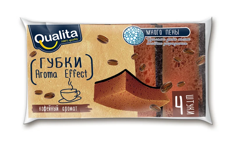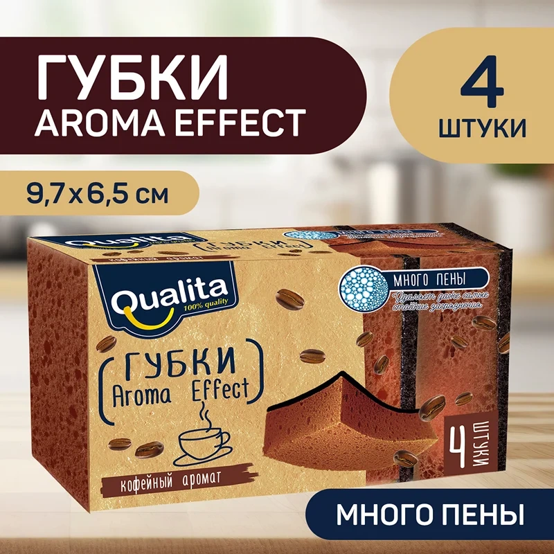 Губка Qualita Aroma Effect для посуды 4шт, 9.7 х 6.5см
