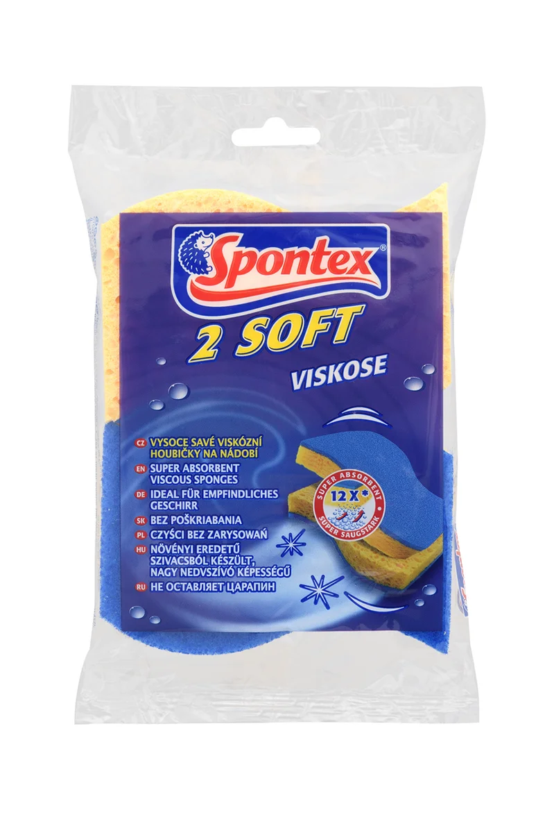 Губка Spontex Soft вискозная 2 штуки, 10,5 x 5,7 x 2,5 см позволяет быстро и легко справляться с любыми загрязнениями. Материал гарантирует долгий срок службы изделия. Губка сохраняет свою форму и структуру даже после множества использований. Сочетание мягкости и прочности делает ее идеальным аксессуаром для всех типов поверхностей, в том числе для посуды. Она бережно очищает, не повреждая изделия, обеспечивая длительное сохранение качества. Губка без труда отмывает даже стойкие пятна. Она быстро высыхает, что препятствует возникновению бактерий и образованию неприятного запаха. Губку необходимо промыть водой перед каждым использованием и после него.