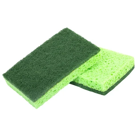 Губки для посуды 110х70х20 мм, ЦЕЛЛЮЛОЗНЫЕ + АБРАЗИВ, КОМПЛЕКТ 2 штуки, зеленые/зеленый абразив, LAI