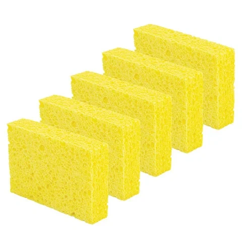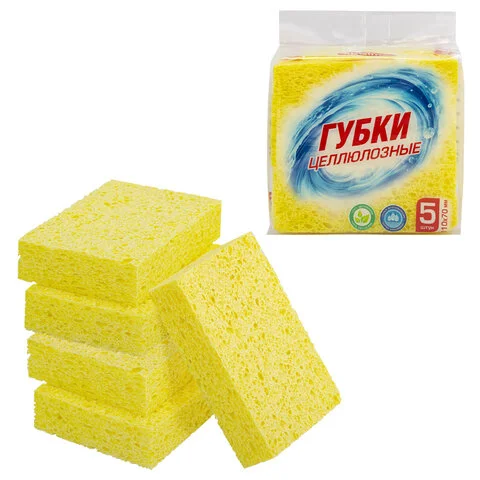 Губки для посуды 110х70х20 мм, ЦЕЛЛЮЛОЗНЫЕ, КОМПЛЕКТ 5 штук, желтые, LAIMA, 700259