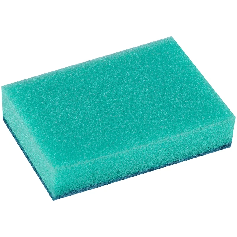 Поролоновые губки с абразивным слоем применяются для мытья посуды, раковин, ванны, газовых и эл. плит, кафеля, в холодной и горячей воде, с моющими средствами, при разной степени загрязнённости. Мягкий слой предназначен для очистки деликатных поверхностей, в том числе тефлона, керамики. Жесткий слой – для удаления сильных загрязнений.
