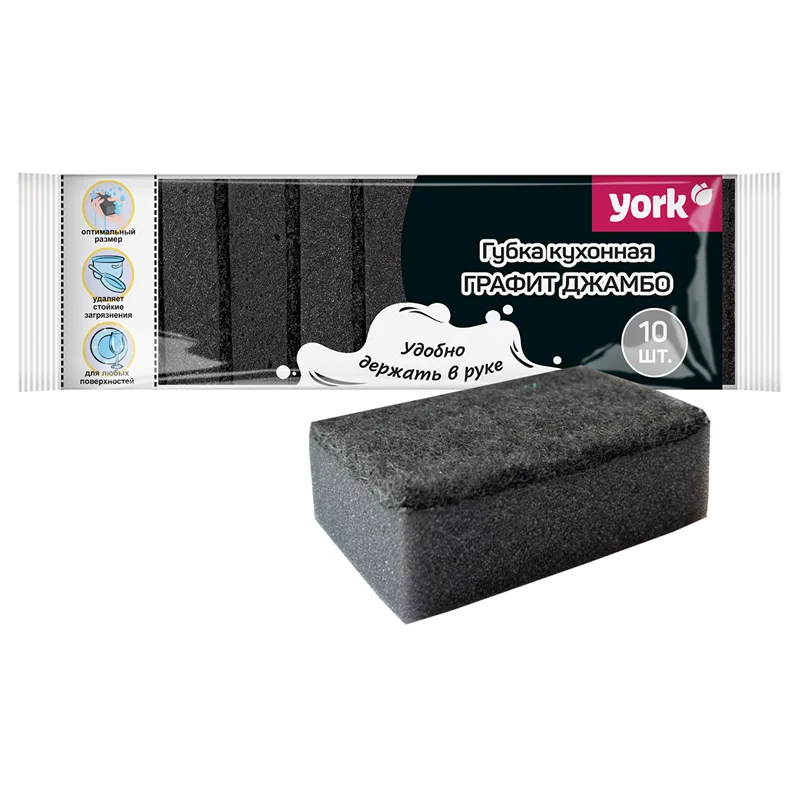 Губки для посуды York 'Графит Джамбо', поролон с абразивным слоем, 8,5*6*2,5 см, 10шт.