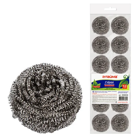 Губки (мочалки) для посуды металлические LAIMA, КОМПЛЕКТ 12 шт., спиральные по 15 г, 606658