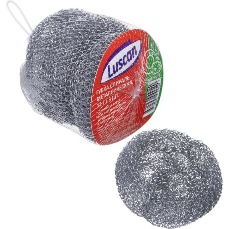 Губка-мочалка спираль Luscan металлические 12г 3 шт/ уп