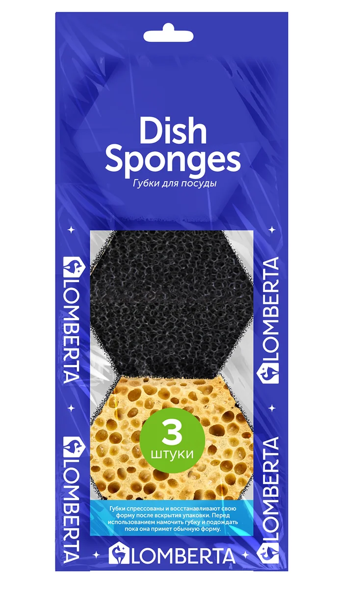 Губка для посуды Lomberta ретикулированная 9 x 8см, 3шт