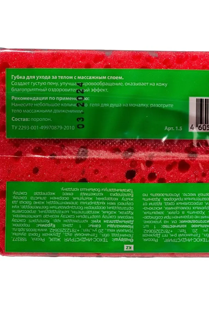 Губка для тела поролоновая Тонус массажная прямоугольная.Размер: 140х100х50 мм.В индивидуальной упаковке.