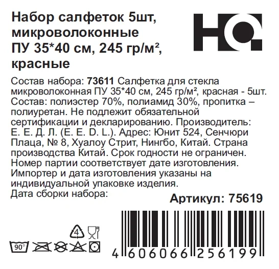 Салфетка HQ ProfiLine красная 5шт, 35 x 40см, 75619