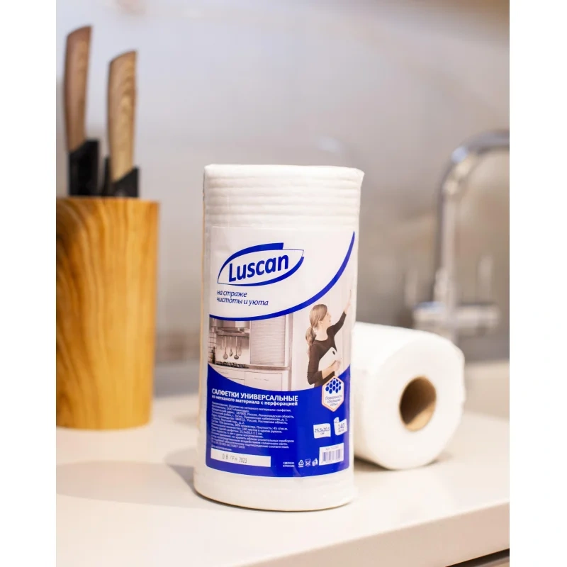 Салфетка рулонная Luscan универсальная, 25.5х20.5см, вискоза, 140шт/уп, в рулоне