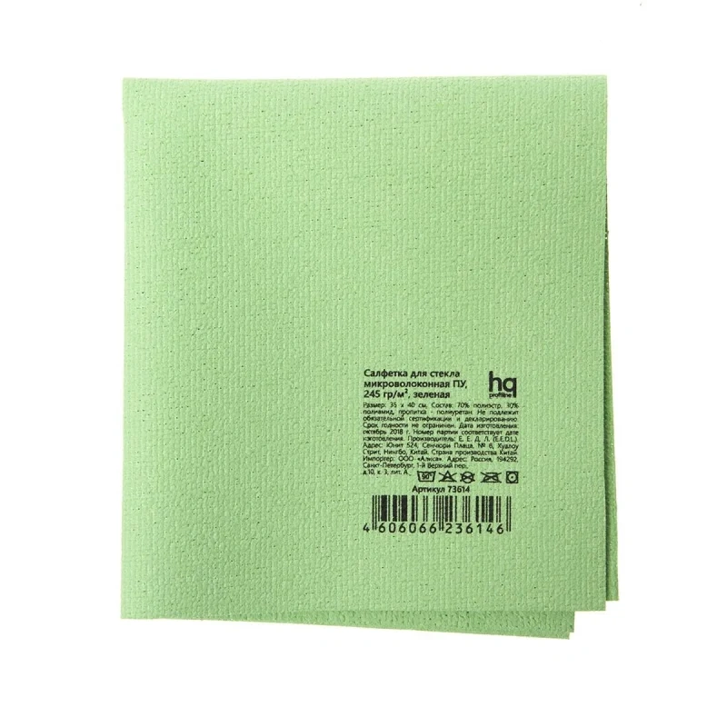 Салфетка хозяйственная HQ Profiline д/стекл ПУ 35х40см 245г/м зелен 2шт/уп