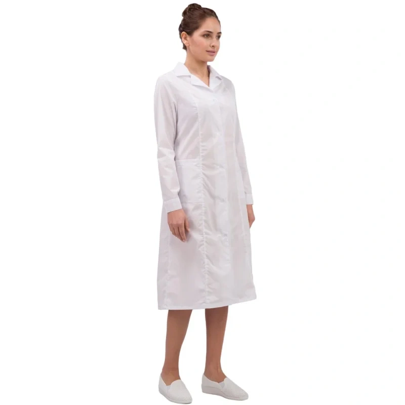 Халат предназначен для использования в медицинских и санитарных организациях. Он обеспечивает защиту от общих производственных загрязнений.
