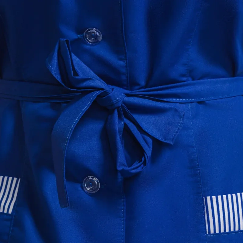 Также в коллекции униформы для горничных и уборщиц у01 представлены халаты у01-ХЛ в васильковом цвете с длинным рукавом. Цветовая гамма коллекции дополнительно представлена цветами бирюзовый и бордо, моделями халатов с длинным и коротки рукавами.