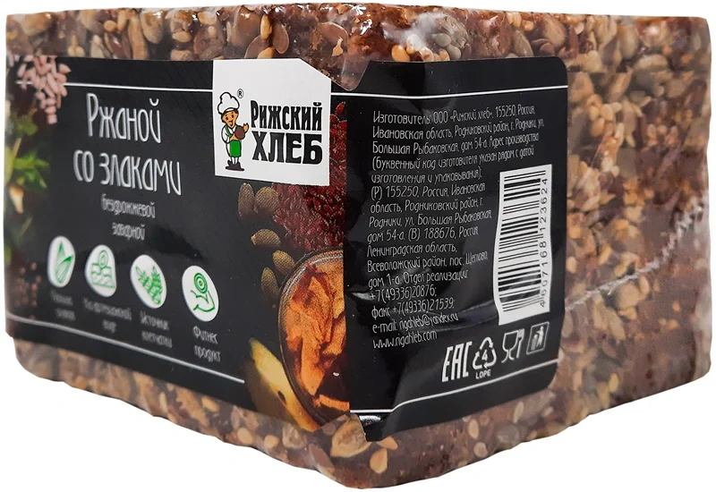 Хлеб Рижский хлеб ржаной со злаками бездрожжевой заварной, 300г