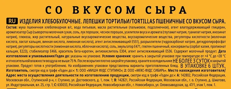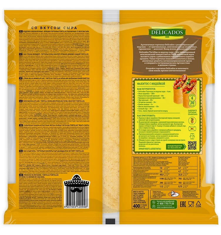 Лепешка мексиканская Delicados Тортилья пшеничная со вкусом сыра, 400г