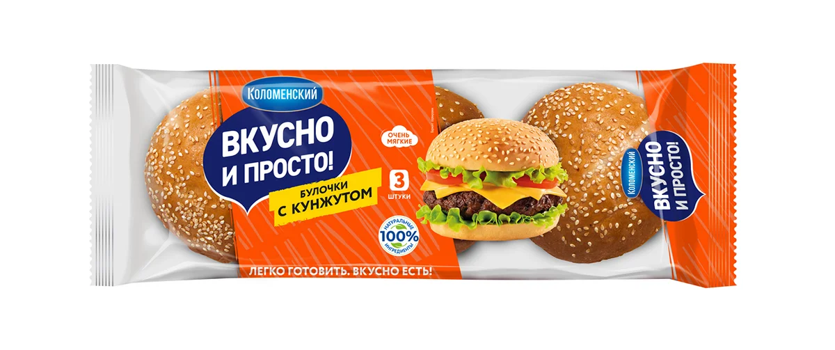 Булочки для бургера Коломенский Вкусно и просто с кунжутом, 180г