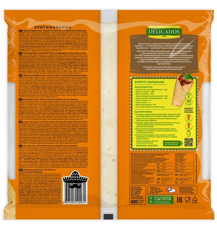 Лепешка мексиканская Delicados Тортилья пшеничная Оригинальная, 400г