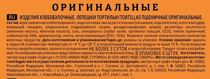 Лепешка Mission Тортилья пшеничная 6шт по 20см, 250г