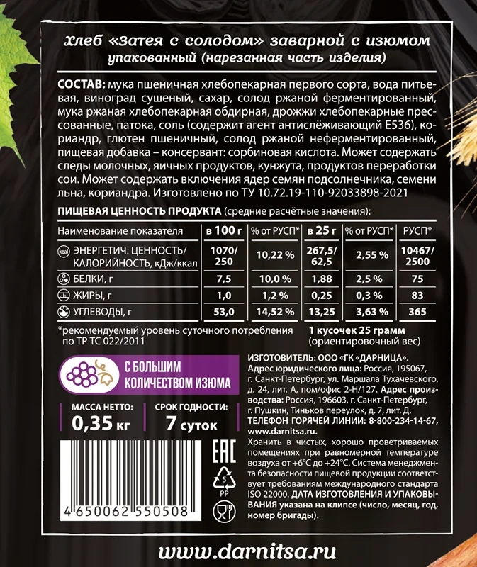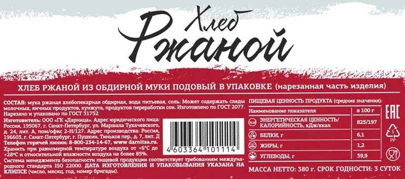 Отзывы о «Хлеб Дарница ржаной, подовый, 380г»