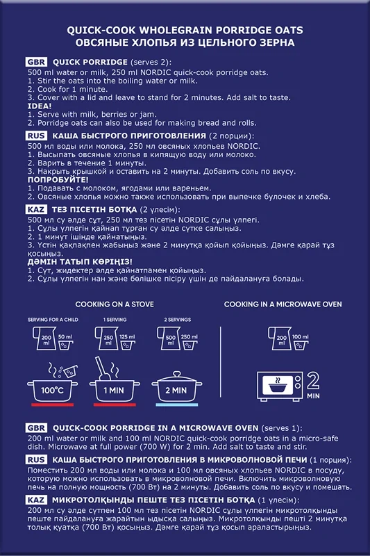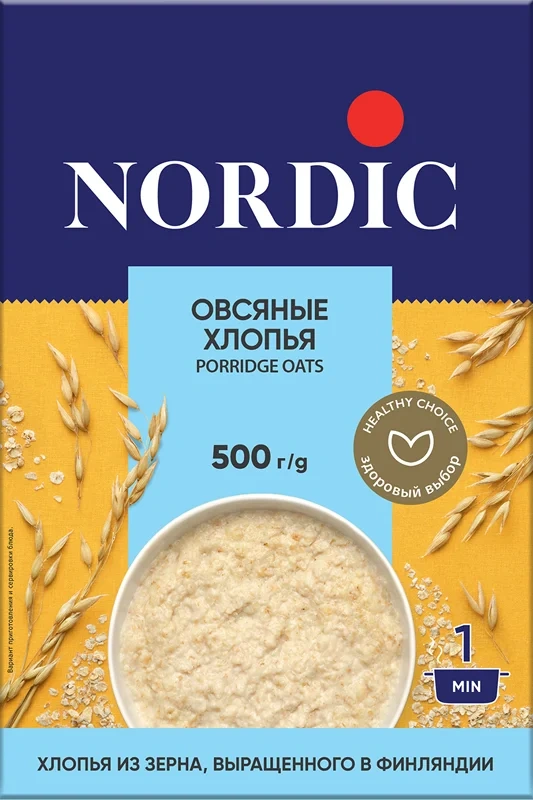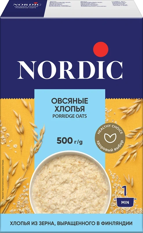 Хлопья овсяные Nordic, 500г идеально подойдут для приготовления аппетитной каши на завтрак. Время приготовления составляет всего одну минуту. При желании в овсяную кашу можно добавить свежие или сушеные фрукты и ягоды, а также варенье, джем или орехи. Продукт станет отличным вариантом для создания диетических печений, низкокалорийных пирожных с фруктами и ягодами, блинчиков, пудингов, запеканок, свежего домашнего хлеба, булочек и многого другого. Овсяные хлопья являются источником полезных микроэлементов. Продукт оказывает тонизирующее, укрепляющее и стимулирующее воздействие. Овсяные хлопья помогают нормализовать обмен веществ, активизируют защитные функции организма и способствуют снижению веса. Продукт благотворно воздействует на кровеносную систему и является отличной профилактикой образования тромбов.