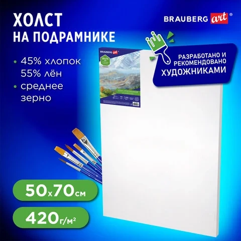 Холст грунтованный Brauberg 50х70см, 420 г/м2, хлопок+лён, cреднее зерно