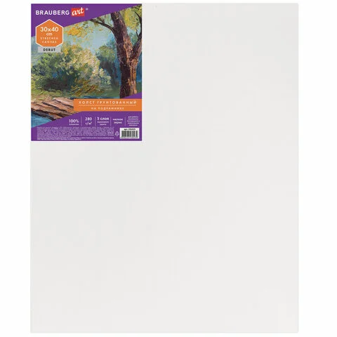 Холст грунтованный Brauberg Эконом на подрамнике, 30х40см, 280 г/м2, хлопок, мелкое зерно