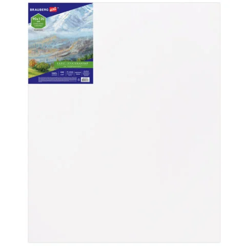 Холст грунтованный Brauberg на подрамнике, 90х120см, 440 г/м2, хлопок, крупное зерно