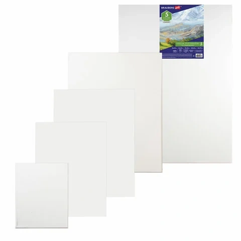 Холст грунтованный Brauberg 380 г/м2, хлопок, среднее зерно, 5шт