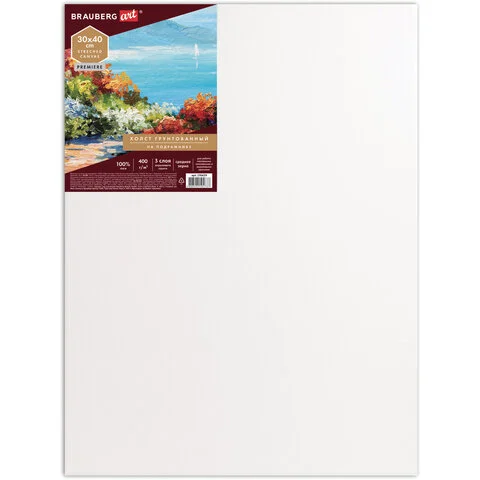 Холст грунтованный Brauberg 30х40см, 400 г/м2, лен, среднее зерно