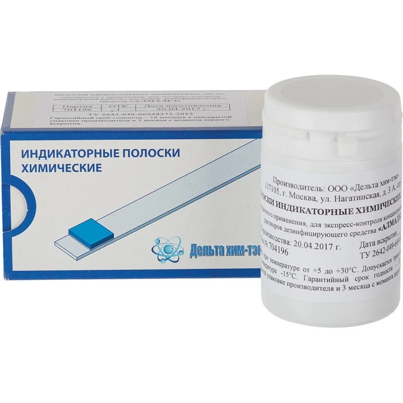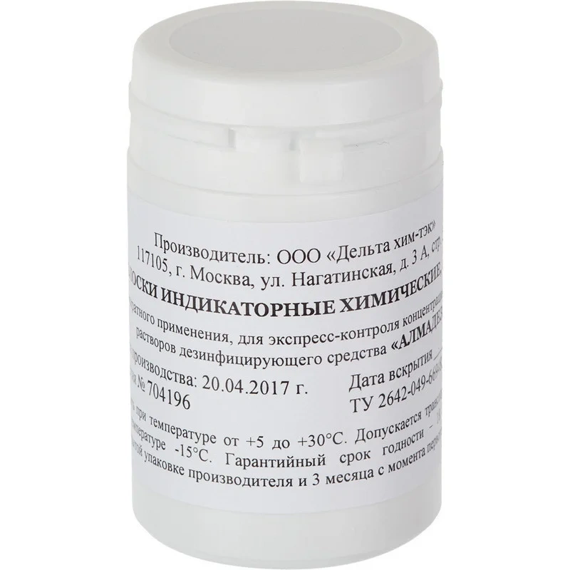 Индикаторные полоски используют для определения концентрации рабочих растворов на основе концентрата ’Алмадез’. Рабочие растворы готовят из концентрата в соответствии с инструкцией по применению дезинфицирующего средства ’АЛМАДЕЗ’ ООО ’Базовая дезинфекция’, Россия. Индикаторные полоски предназначены для персонала лечебно-профилактических учреждений, работников дезинфекционной и санитарно-эпидемиологической служб, а также других учреждений, имеющих право заниматься дезинфекционной деятельностью. В комплекте: запечатанный пенал с индикаторными полосками (100 индикаторов-полосок); цветовая шкала для сравнения; инструкция по применению; контрольные наклейки. Срок хранения: в невскрытой упаковке: 18 мес. после вскрытия: 3 мес. Правила пользования, условия хранения и доставки, примечания и другая полезная информация прилагается в виде инструкции. Обратите внимание, что для достоверности результата опыт проводят не менее 3 раз на 1 раствор.